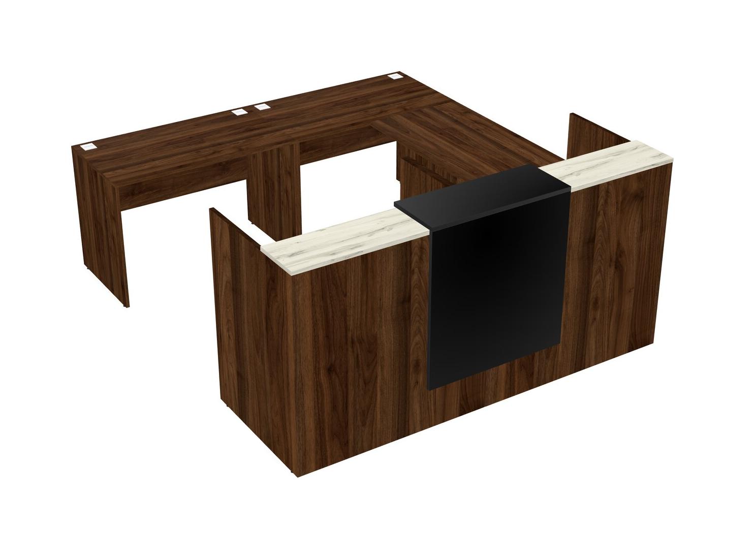 Modular Shared One Sided U-Shaped Reception Desk With Floating Counter + Wooden Mobile Drawers