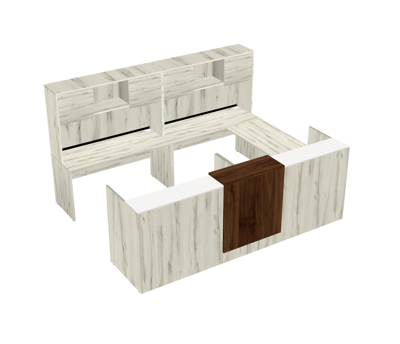 Modular Shared One Sided U-Shaped Reception Desk With Floating Counter + Hutch + Wooden Mobile Drawers