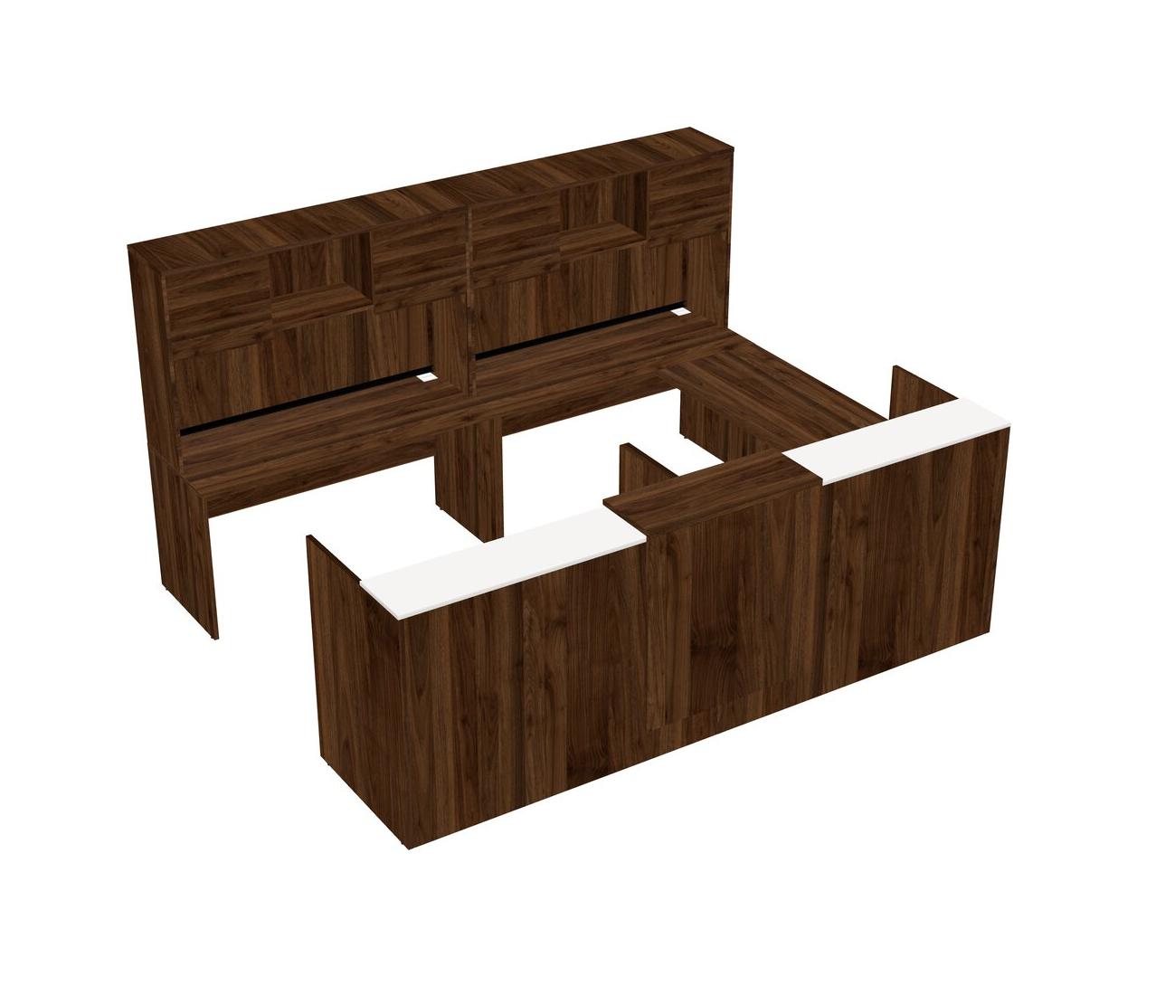 Modular Shared One Sided U-Shaped Reception Desk With Floating Counter + Hutch + Wooden Mobile Drawers