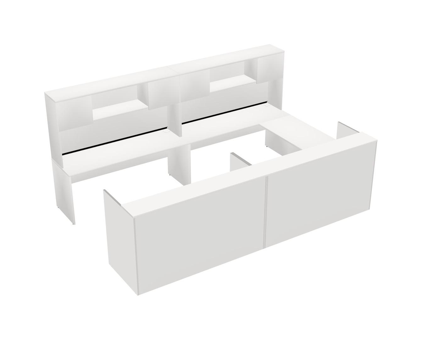 Modular Shared One Sided U-Shaped Reception Desk + Hutch + Wooden Mobile Drawers