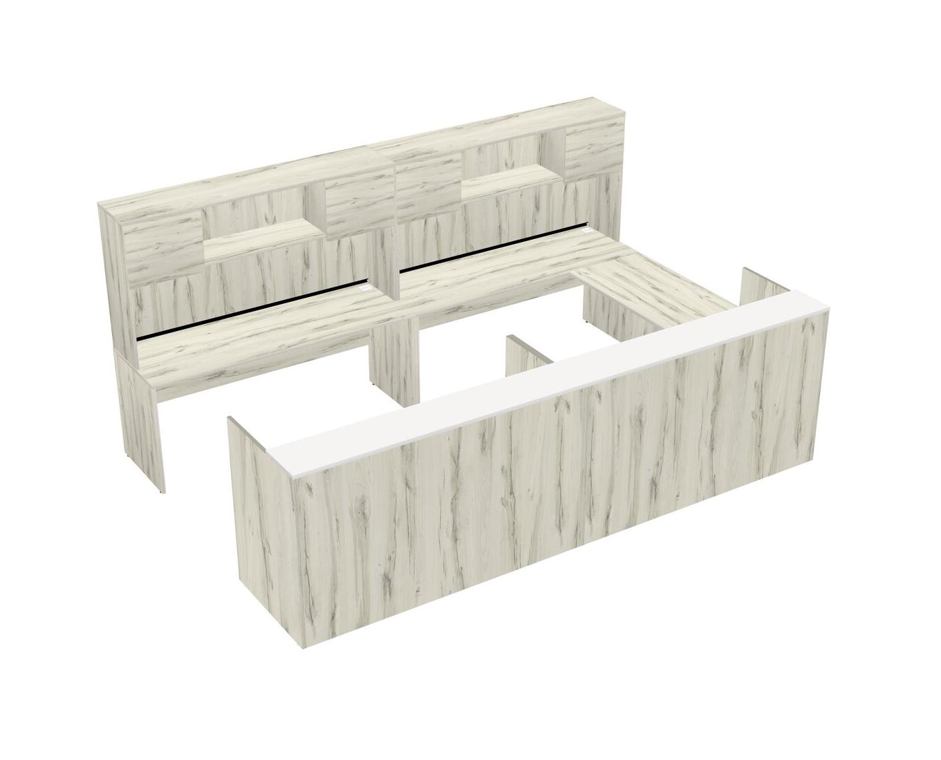 Modular Shared One Sided U-Shaped Reception Desk + Hutch + Wooden Mobile Drawers