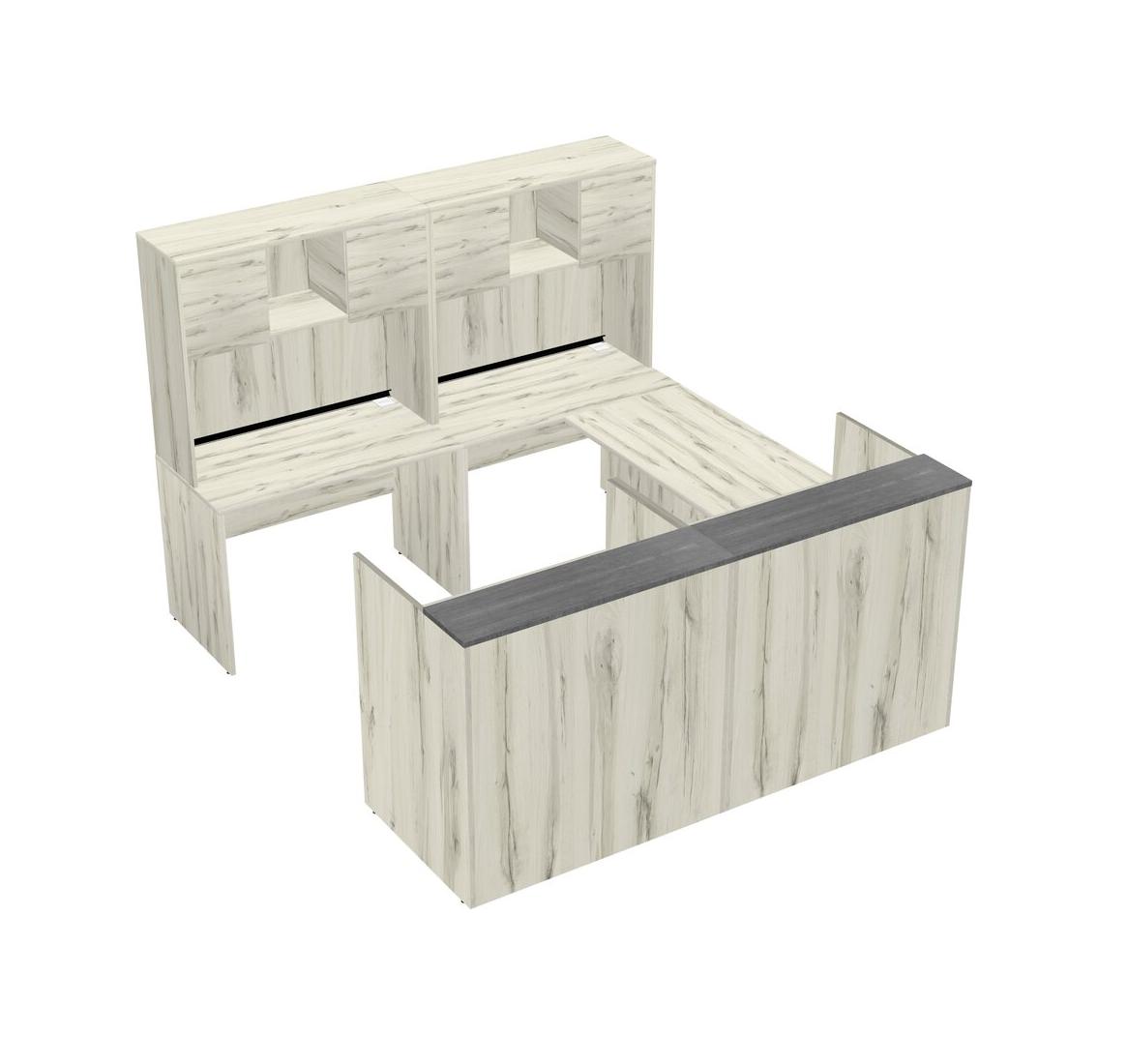 Modular Shared One Sided U-Shaped Reception Desk + Hutch + Wooden Mobile Drawers
