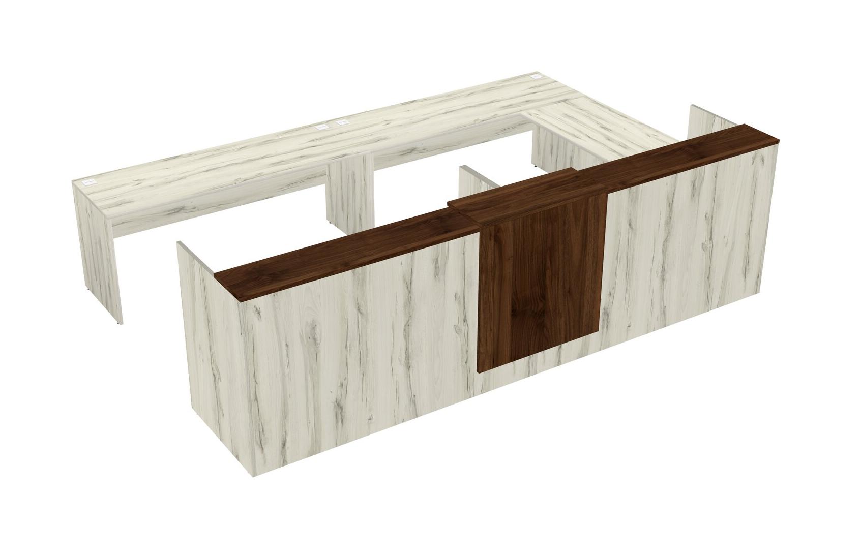 Modular Shared One Sided U-Shaped Reception Desk With Floating Counter + Wooden Mobile Drawers