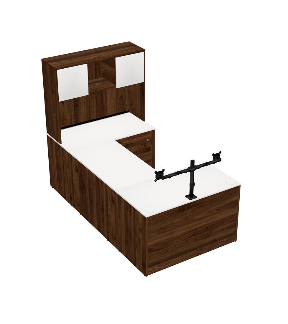 Office U-shaped Desk Credenza Desk + Wooden Mobile Drawers + Hutch + Monitor Arm (double Arms)