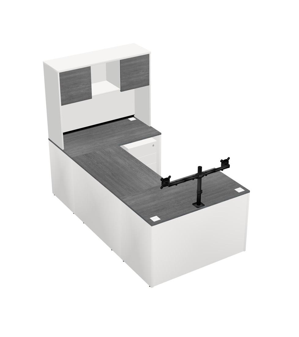 Office U-shaped Desk Credenza Desk + Wooden Mobile Drawers + Hutch + Monitor Arm (double Arms)