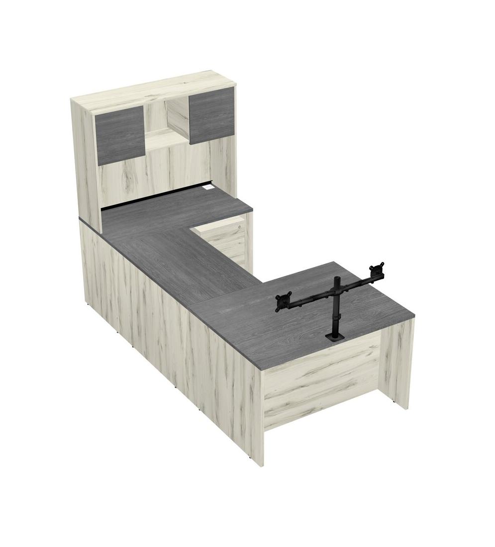 Office U-shaped Desk Credenza Desk + Wooden Mobile Drawers + Hutch + Monitor Arm (double Arms)