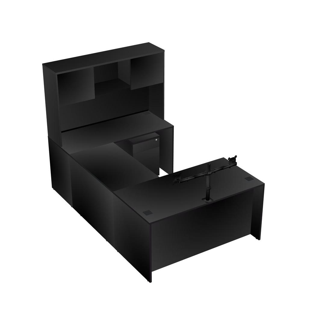 Office U-shaped Desk Credenza Desk + Wooden Mobile Drawers + Hutch + Monitor Arm (double Arms)