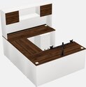 Office U-shaped Desk Credenza Desk + Wooden Mobile Drawers + Hutch + Monitor Arm (double Arms)