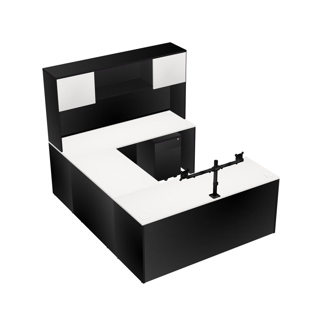 Office U-shaped Desk Credenza Desk + Wooden Mobile Drawers + Hutch + Monitor Arm (double Arms)
