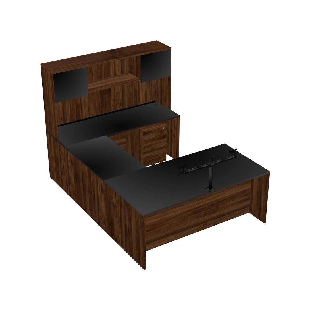 Office U-shaped Desk Credenza Desk + Wooden Mobile Drawers + Hutch + Monitor Arm (double Arms)