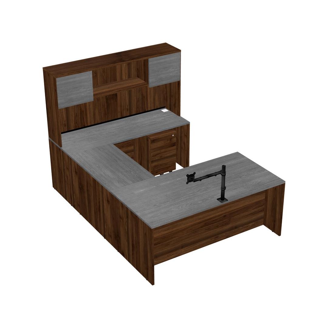 Office U-shaped Desk Credenza Desk + Wooden Mobile Drawers + Hutch + Monitor Arm (single Arm)