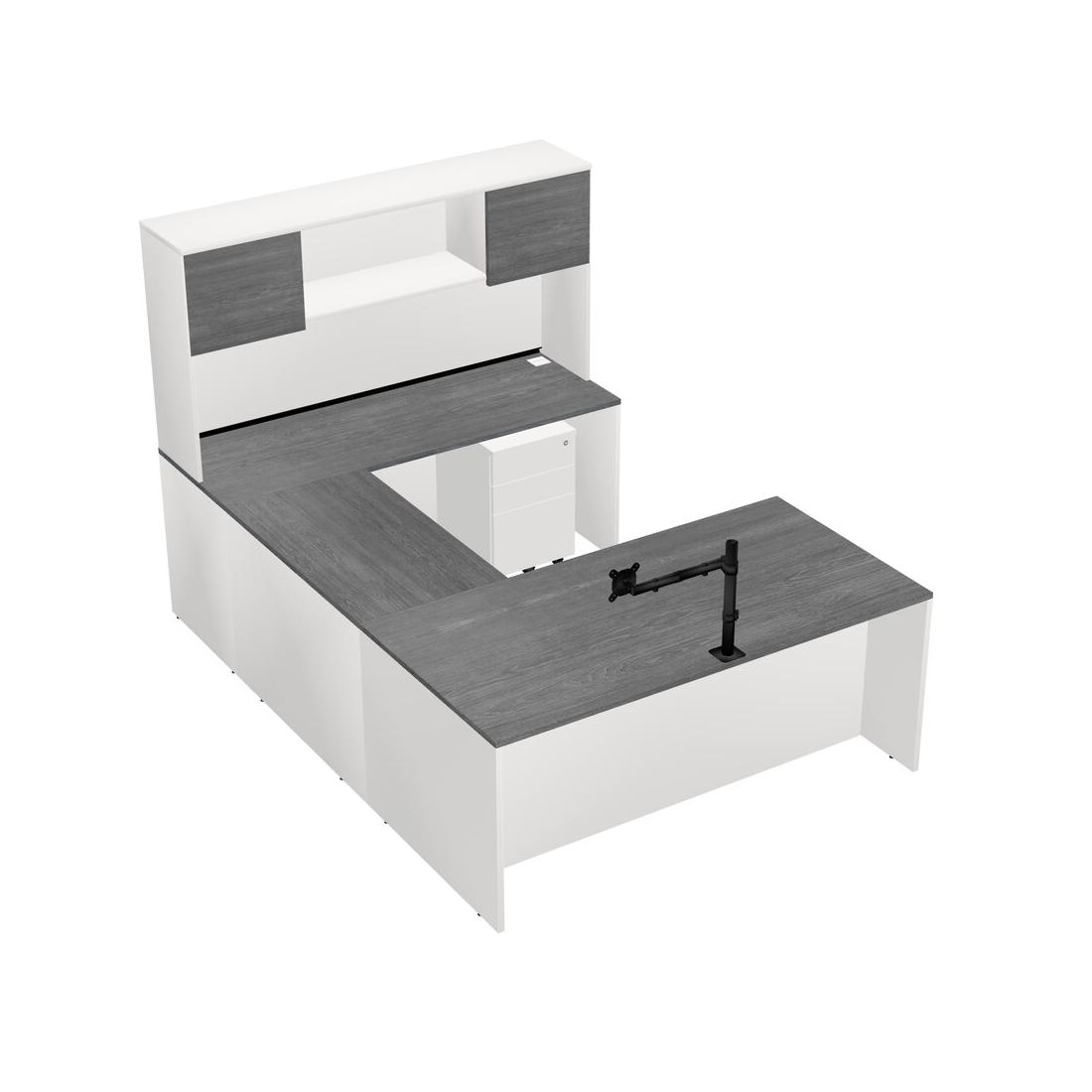 Office U-shaped Desk Credenza Desk + Wooden Mobile Drawers + Hutch + Monitor Arm (single Arm)