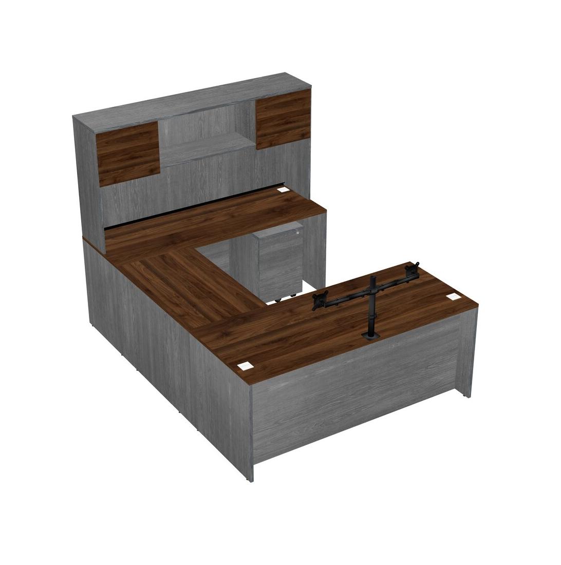 Office U-shaped Desk Credenza Desk + Wooden Mobile Drawers + Hutch + Monitor Arm (double Arms)