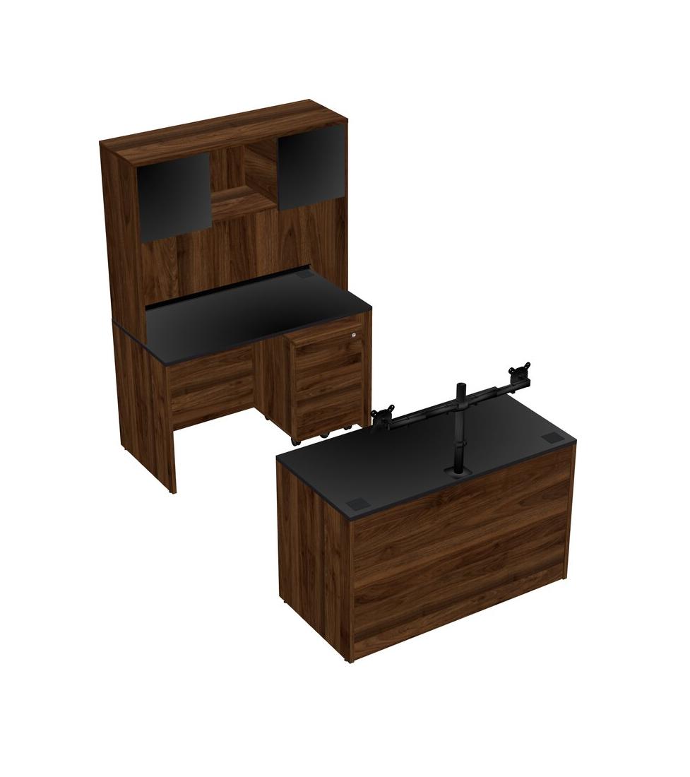 Office Parallel Desk Credenza Desk + Wooden Mobile Drawers + Hutch + Monitor Arm (double Arms)