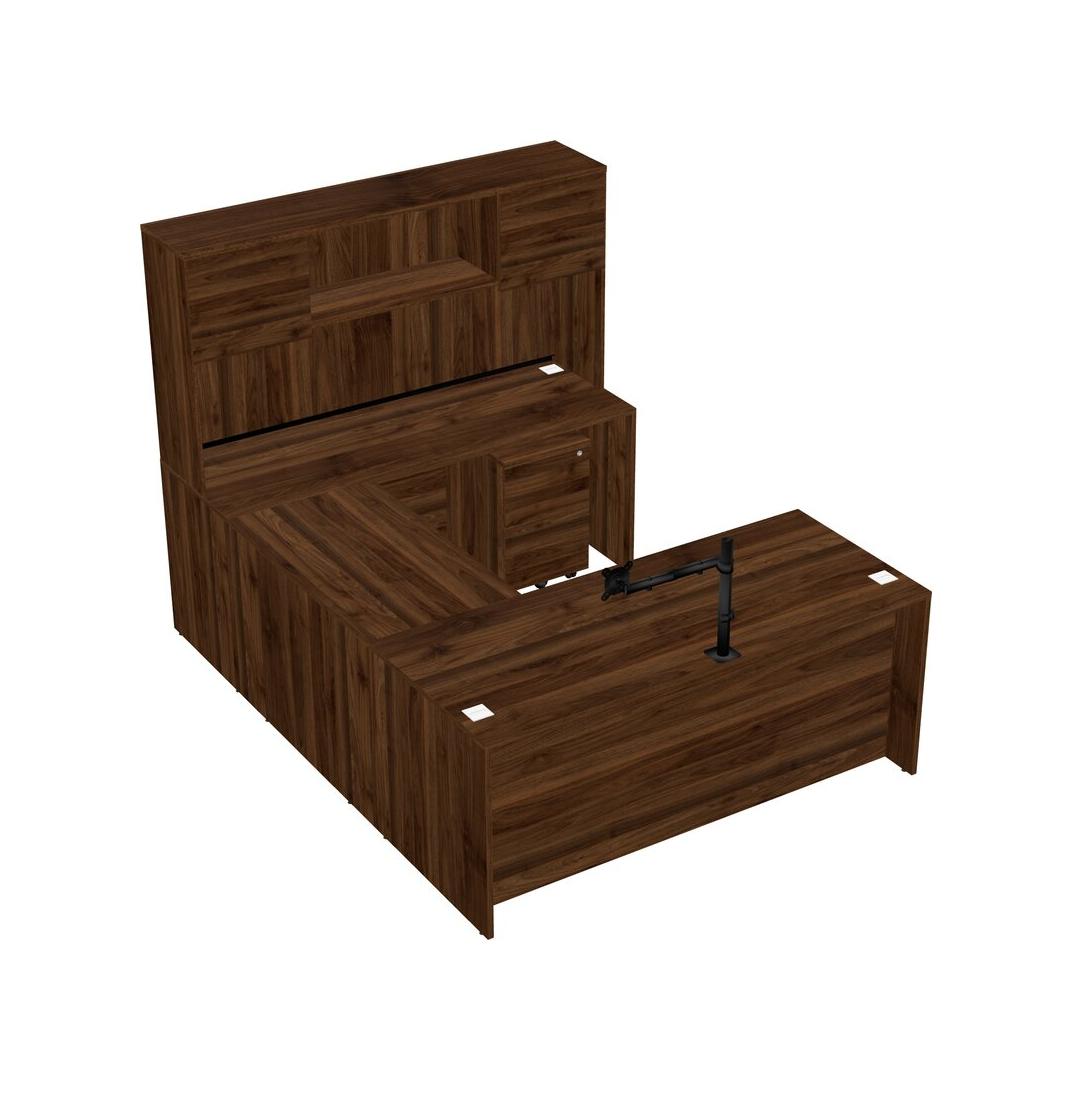 Office U-shaped Desk Credenza Desk + Wooden Mobile Drawers + Hutch + Monitor Arm (single Arm)
