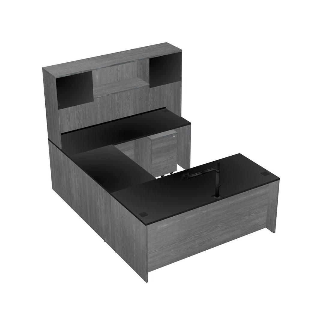 Office U-shaped Desk Credenza Desk + Wooden Mobile Drawers + Hutch + Monitor Arm (single Arm)