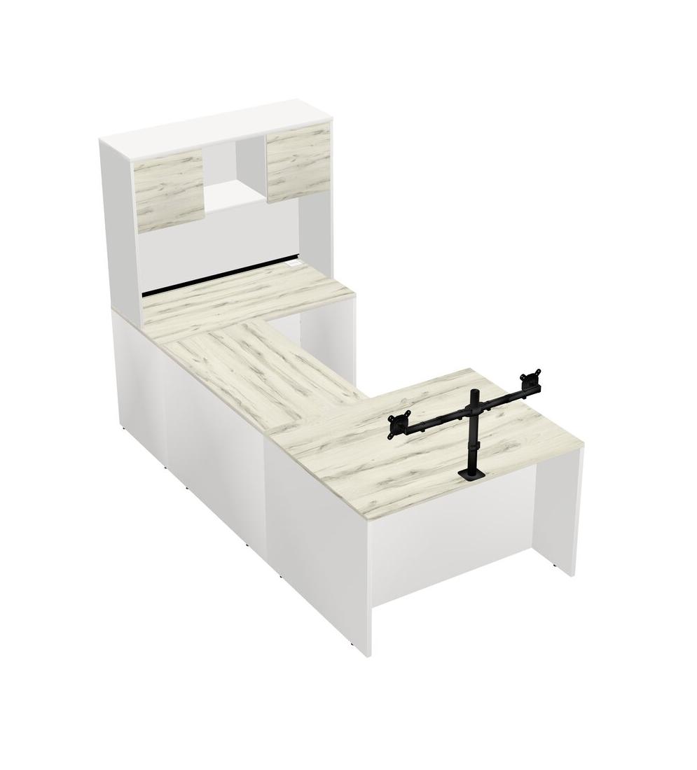 Office U-shaped Desk Credenza Desk + Hutch + Monitor Arm (double Arms)