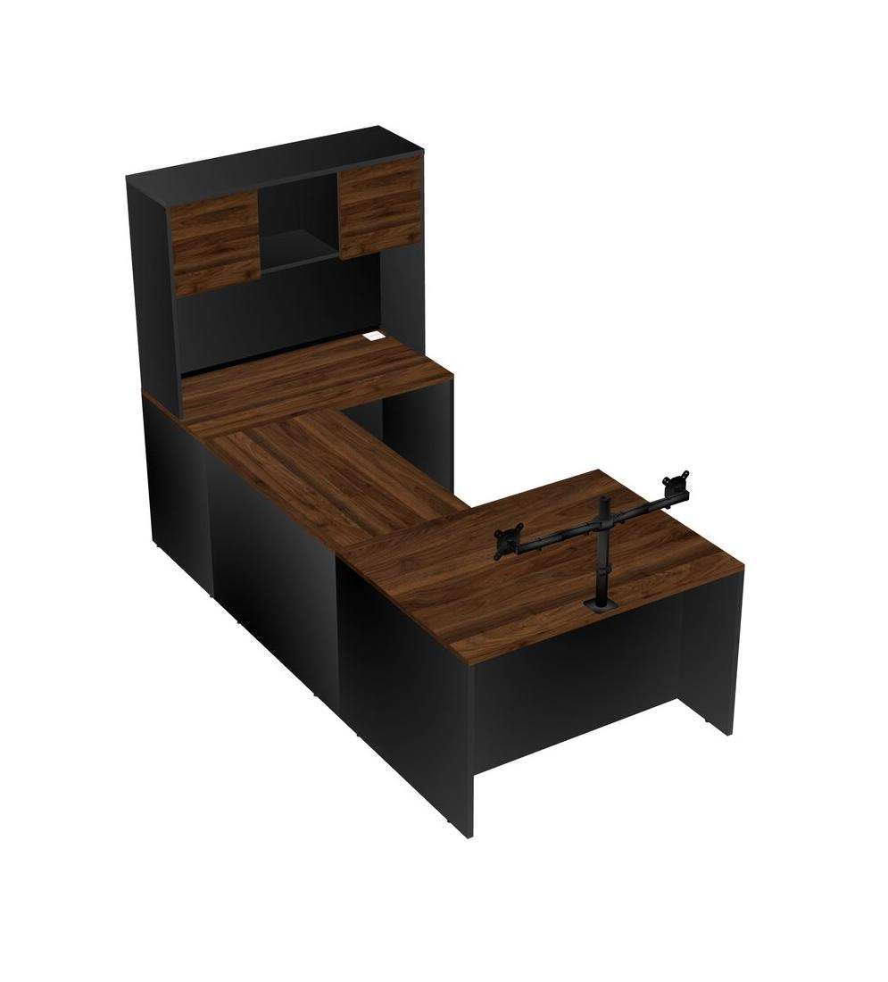 Office U-shaped Desk Credenza Desk + Hutch + Monitor Arm (double Arms)