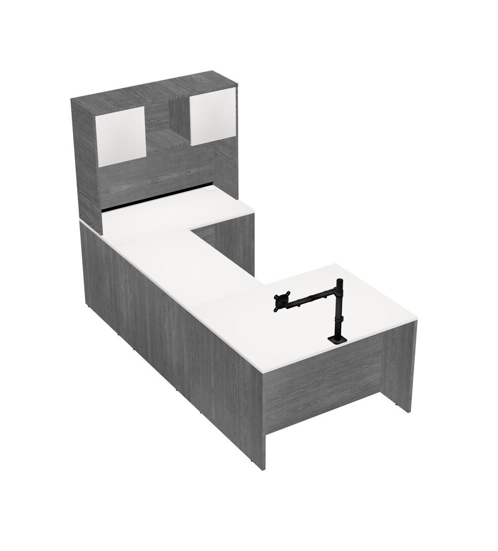Office U-shaped Desk Credenza Desk + Hutch + Monitor Arm (single Arm)