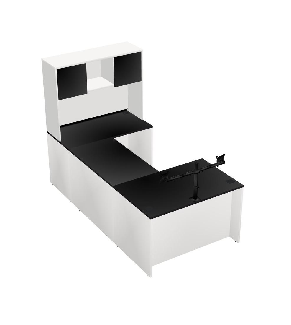 Office U-shaped Desk Credenza Desk + Hutch + Monitor Arm (double Arms)