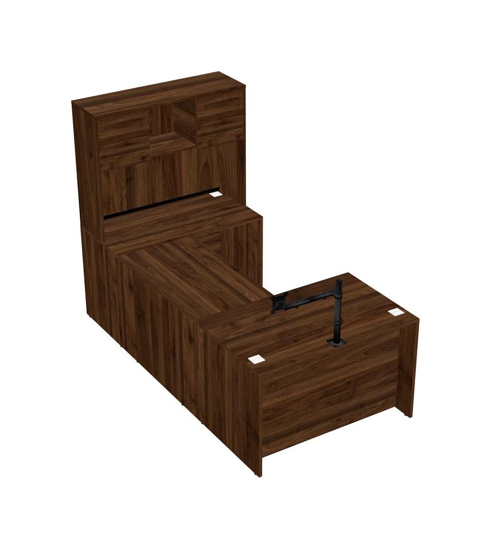 Office U-shaped Desk Credenza Desk + Hutch + Monitor Arm (single Arm)
