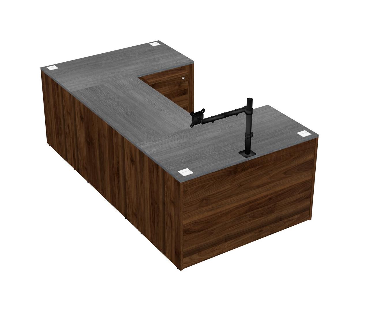 Office U-shaped Desk Credenza Desk + Wooden Mobile Drawers + Monitor Arm (single Arm)