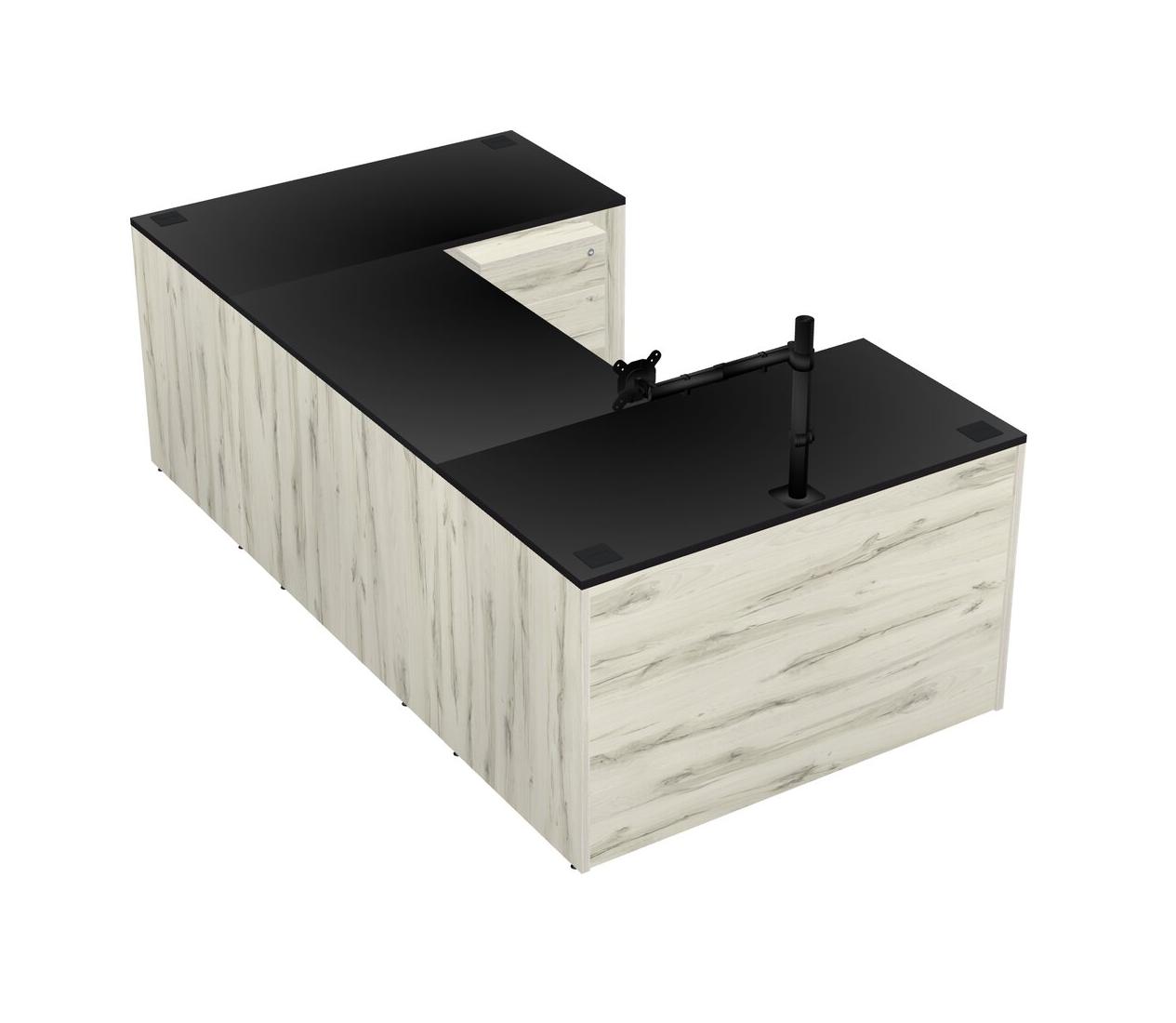 Office U-shaped Desk Credenza Desk + Wooden Mobile Drawers + Monitor Arm (single Arm)