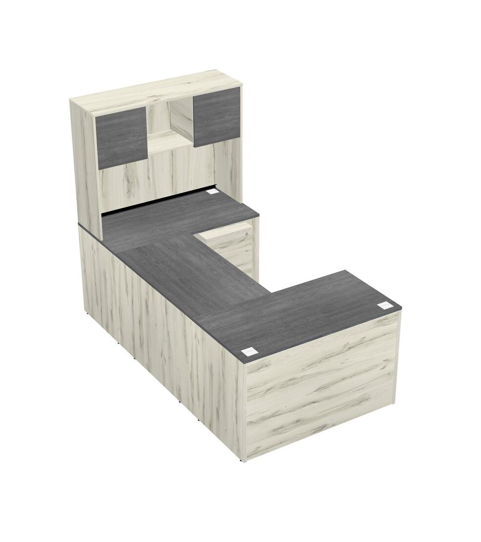 Office U-shaped Desk Credenza Desk + Wooden Mobile Drawers + Hutch