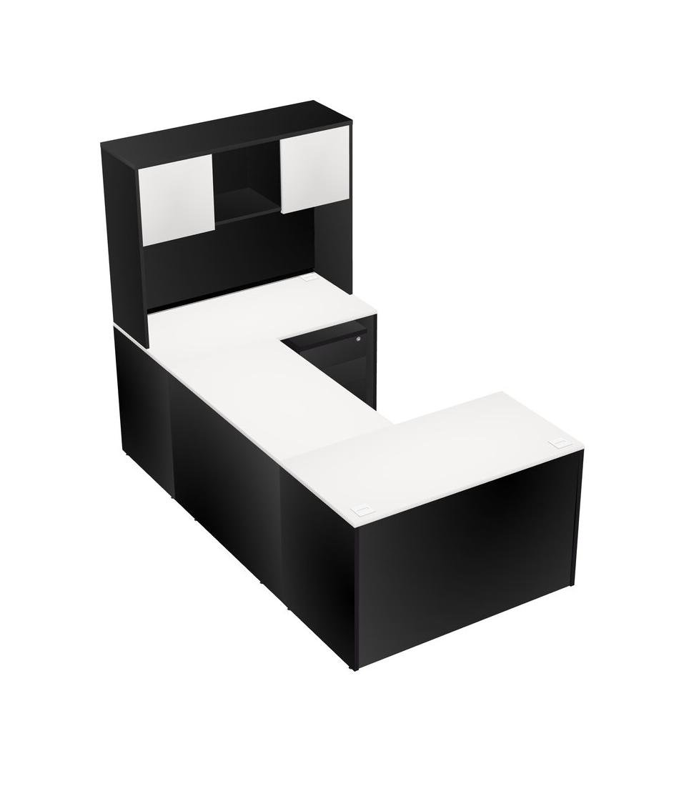 Office U-shaped Desk Credenza Desk + Wooden Mobile Drawers + Hutch