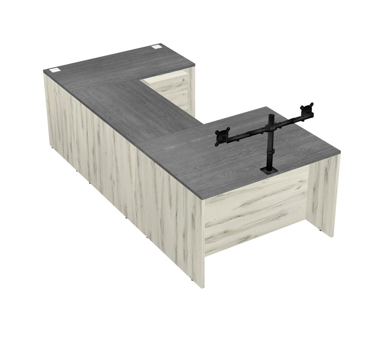 Office U-shaped Desk Credenza Desk + Wooden Mobile Drawers + Monitor Arm (double Arms)