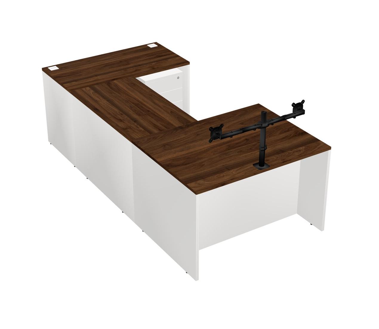 Office U-shaped Desk Credenza Desk + Wooden Mobile Drawers + Monitor Arm (double Arms)