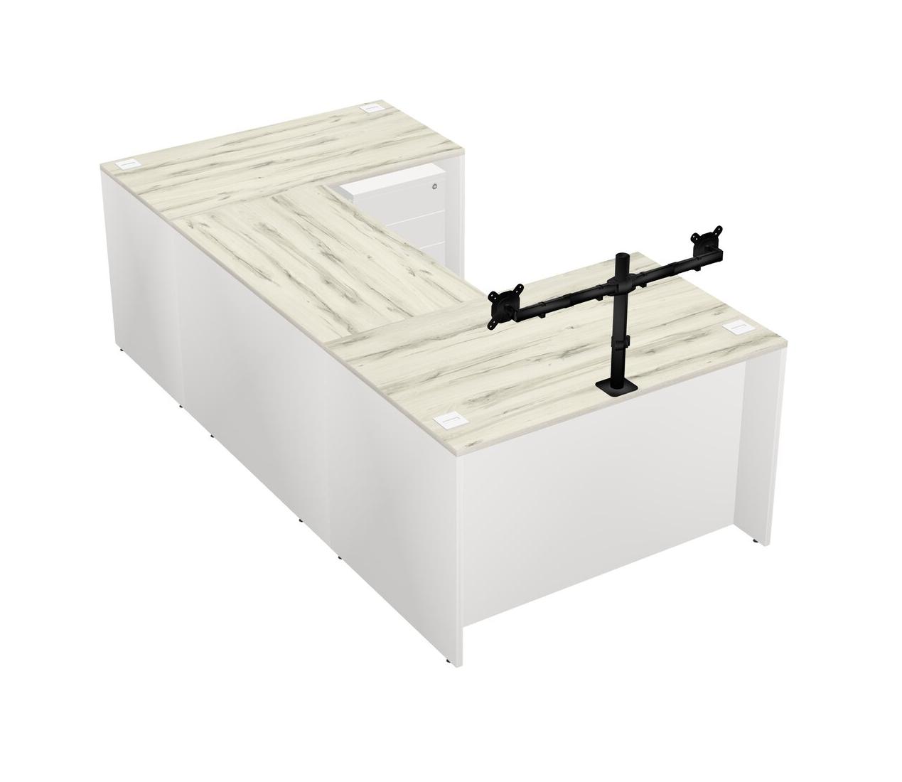 Office U-shaped Desk Credenza Desk + Wooden Mobile Drawers + Monitor Arm (double Arms)