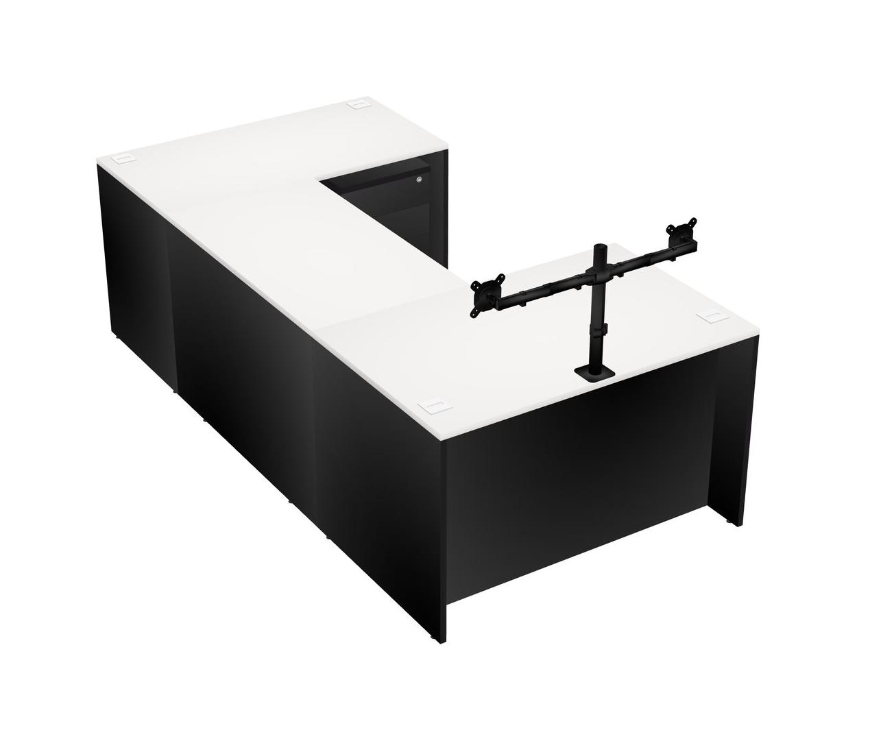 Office U-shaped Desk Credenza Desk + Wooden Mobile Drawers + Monitor Arm (double Arms)