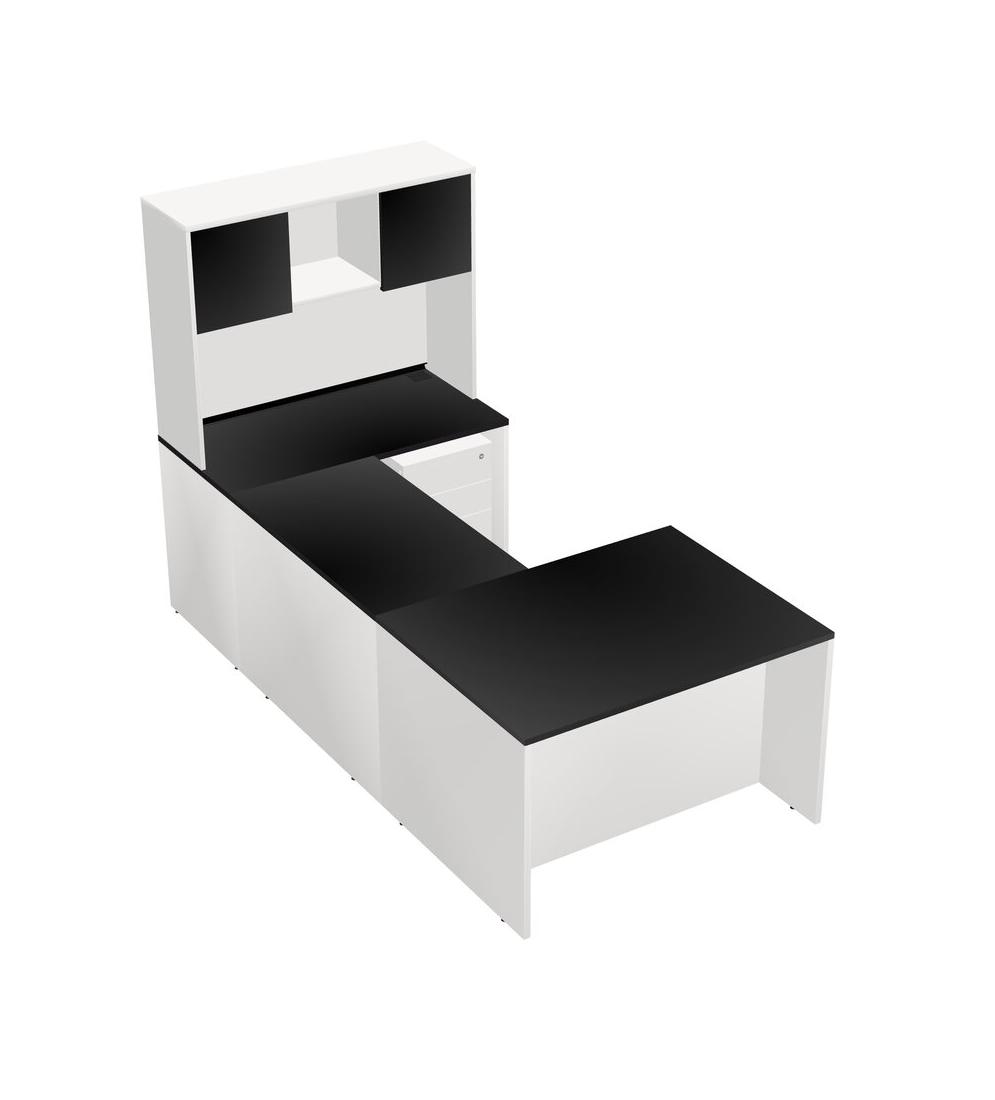 Office U-shaped Desk Credenza Desk + Wooden Mobile Drawers + Hutch