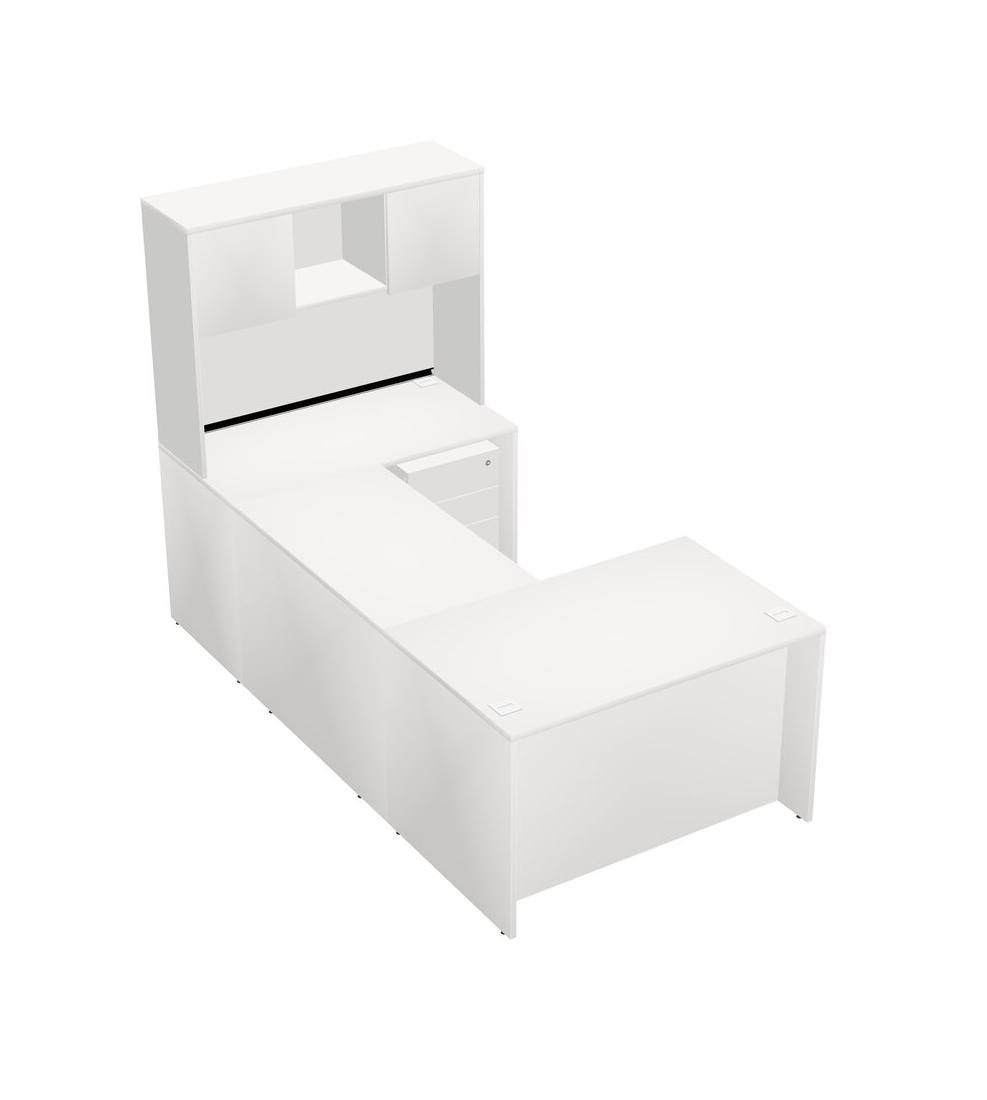 Office U-shaped Desk Credenza Desk + Wooden Mobile Drawers + Hutch