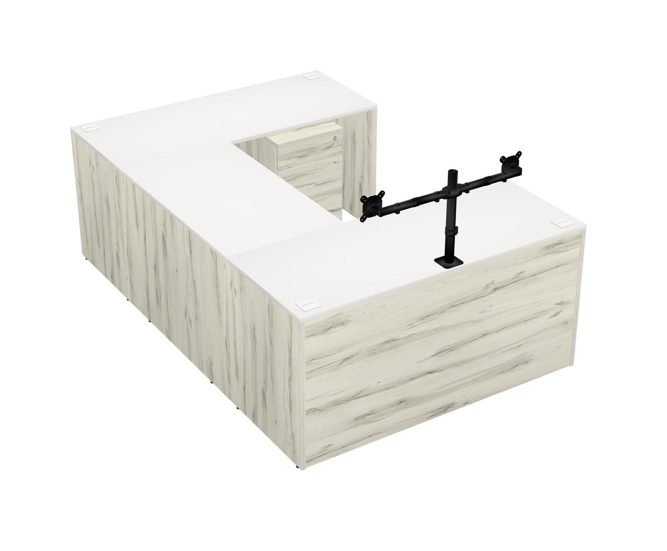 Office U-shaped Desk Credenza Desk + Wooden Mobile Drawers + Monitor Arm (double Arms)