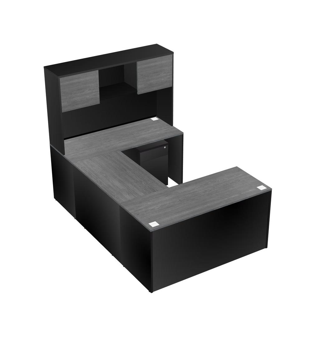 Office U-shaped Desk Credenza Desk + Wooden Mobile Drawers + Hutch
