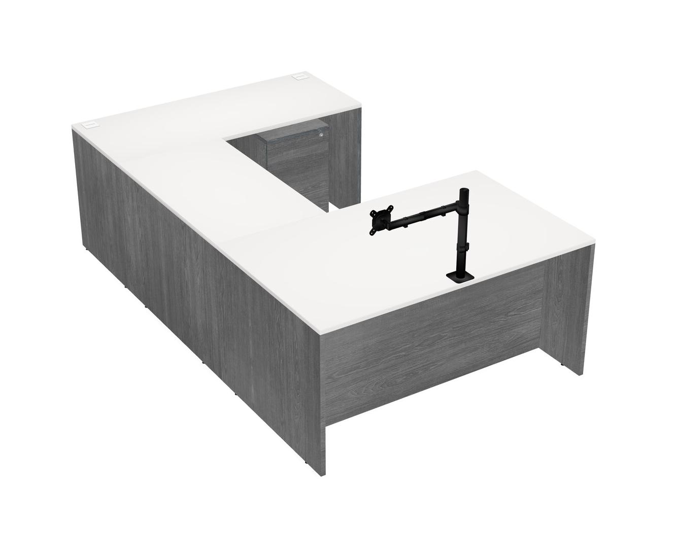 Office U-shaped Desk Credenza Desk + Wooden Mobile Drawers + Monitor Arm (single Arm)