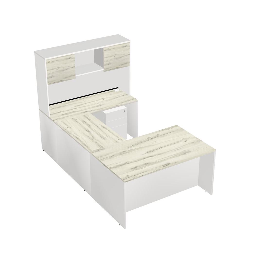 Office U-shaped Desk Credenza Desk + Wooden Mobile Drawers + Hutch