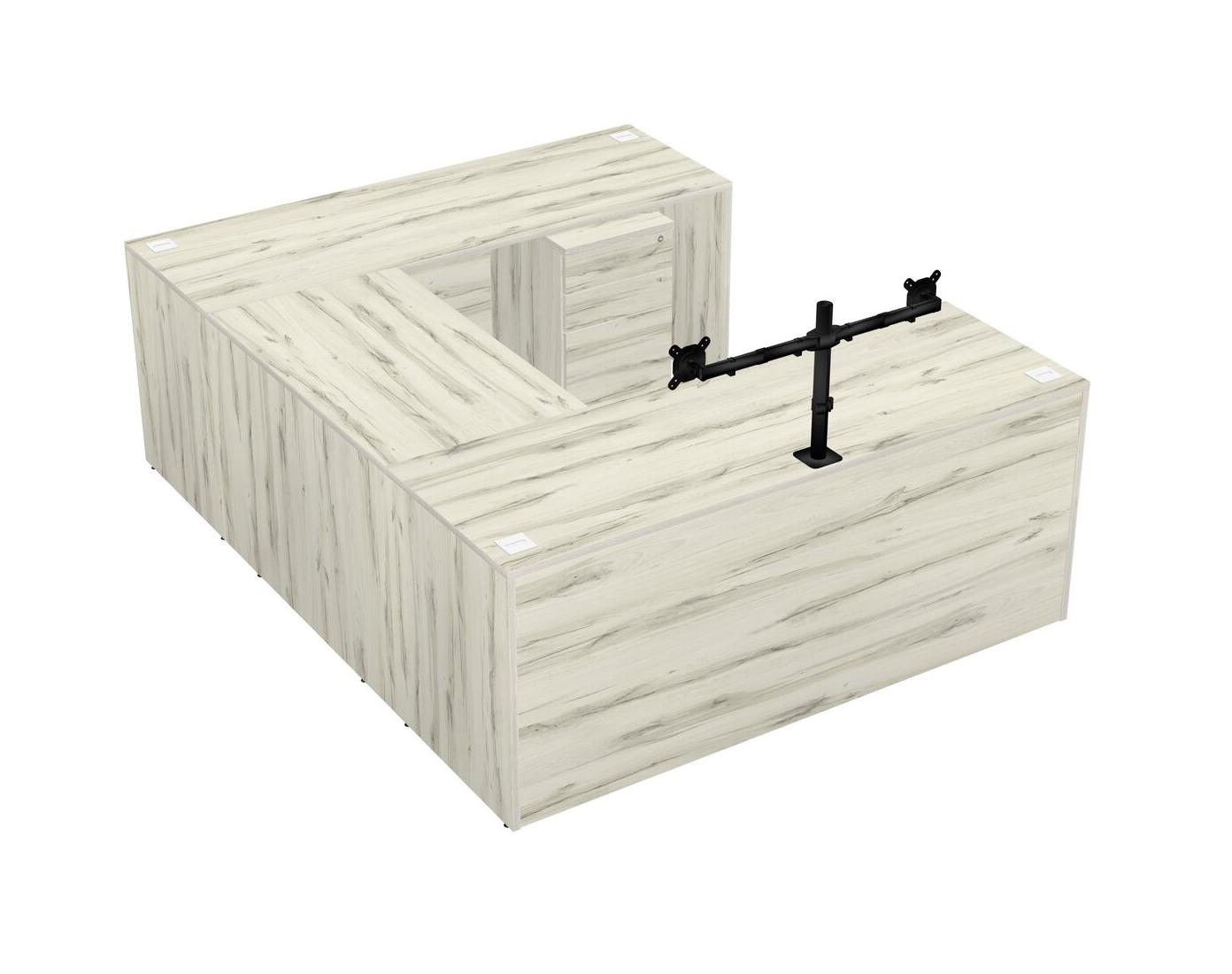 Office U-shaped Desk Credenza Desk + Wooden Mobile Drawers + Monitor Arm (double Arms)
