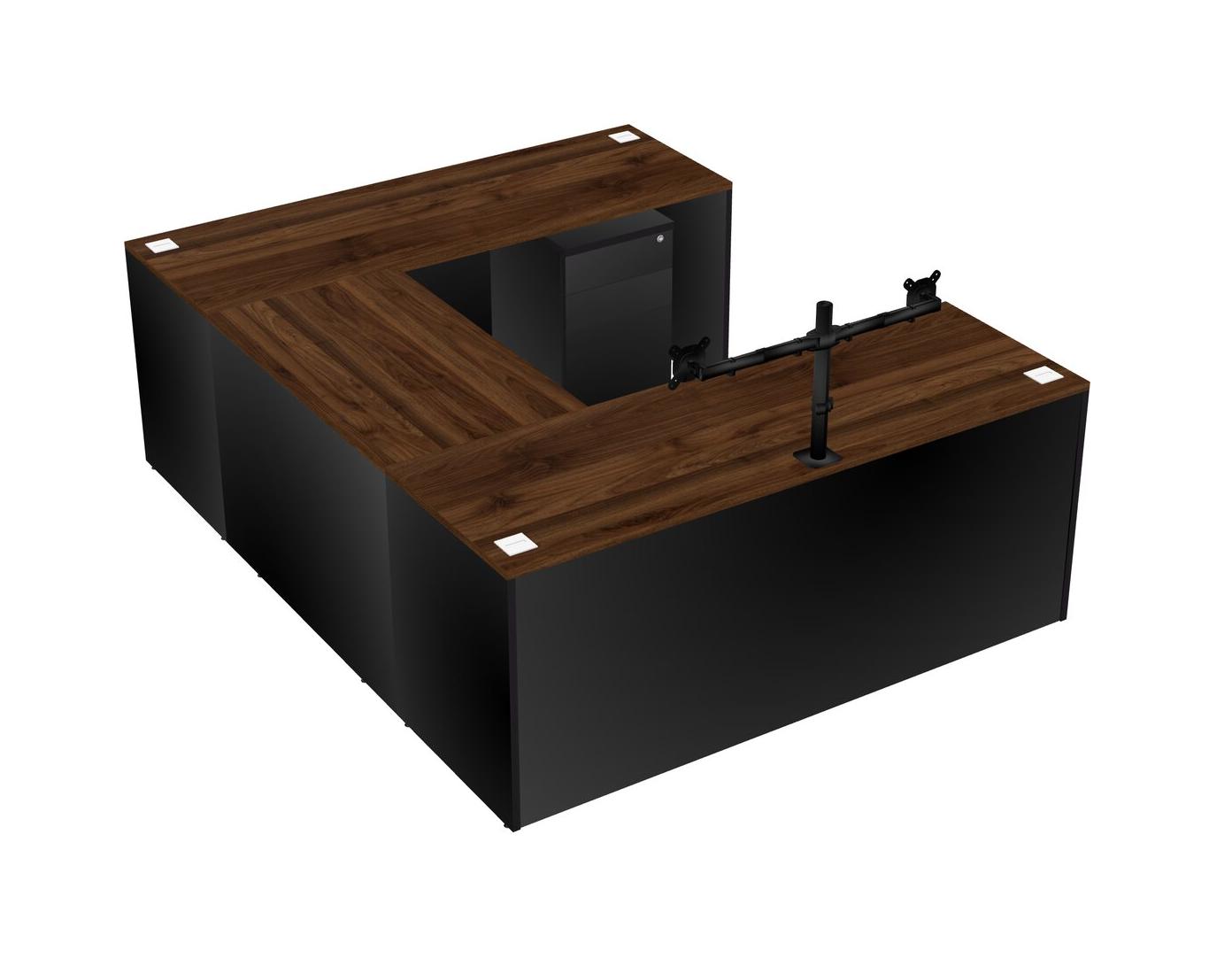 Office U-shaped Desk Credenza Desk + Wooden Mobile Drawers + Monitor Arm (double Arms)