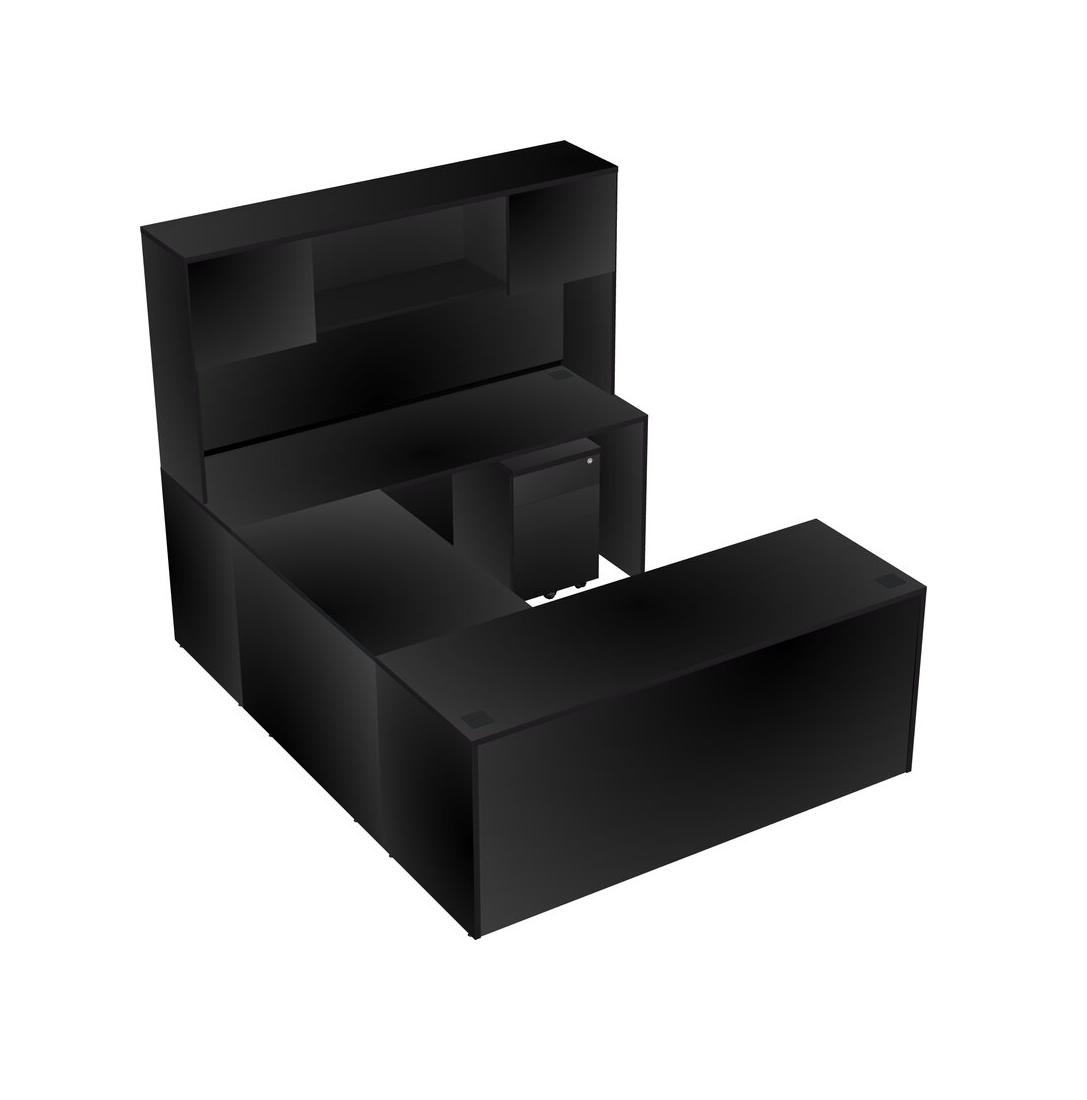Office U-shaped Desk Credenza Desk + Wooden Mobile Drawers + Hutch