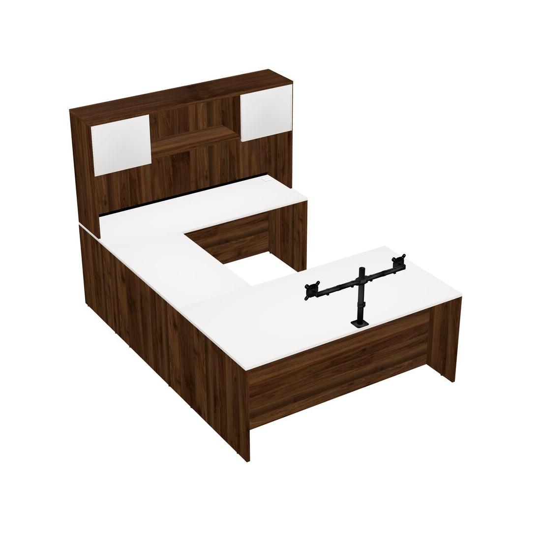 Office U-shaped Desk Credenza Desk + Hutch + Monitor Arm (double Arms)
