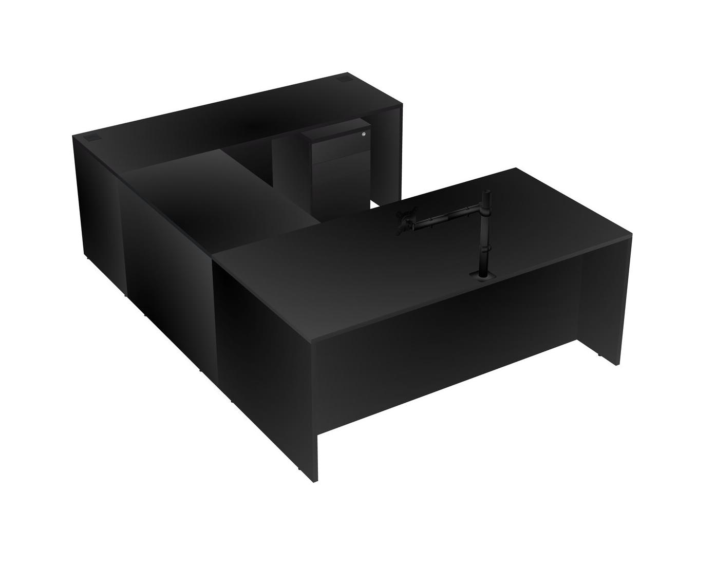 Office U-shaped Desk Credenza Desk + Wooden Mobile Drawers + Monitor Arm (single Arm)