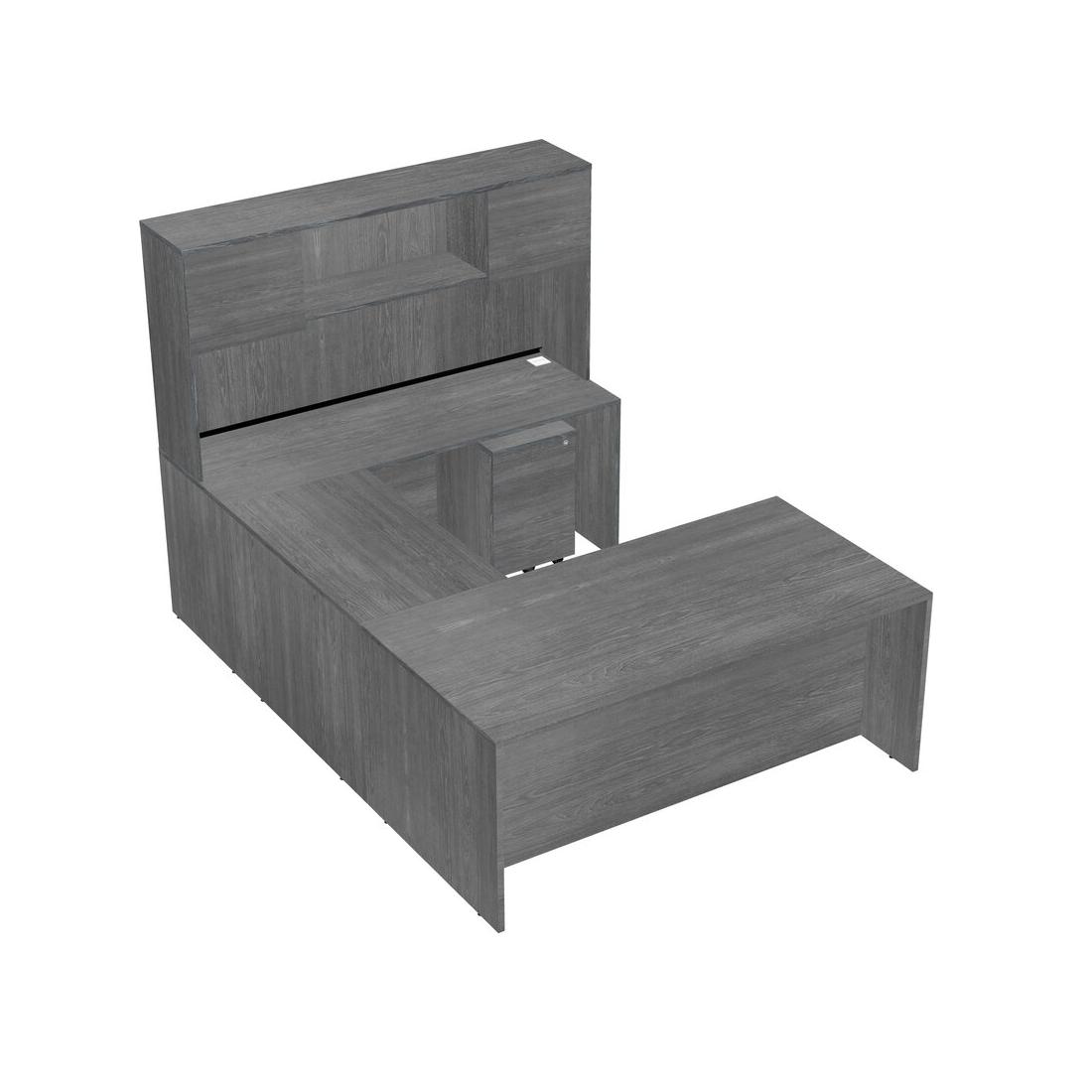 Office U-shaped Desk Credenza Desk + Wooden Mobile Drawers + Hutch