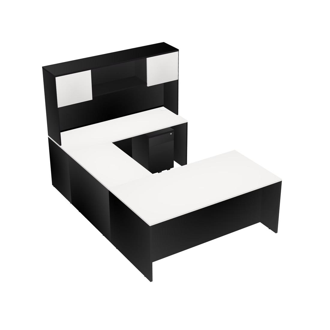 Office U-shaped Desk Credenza Desk + Wooden Mobile Drawers + Hutch