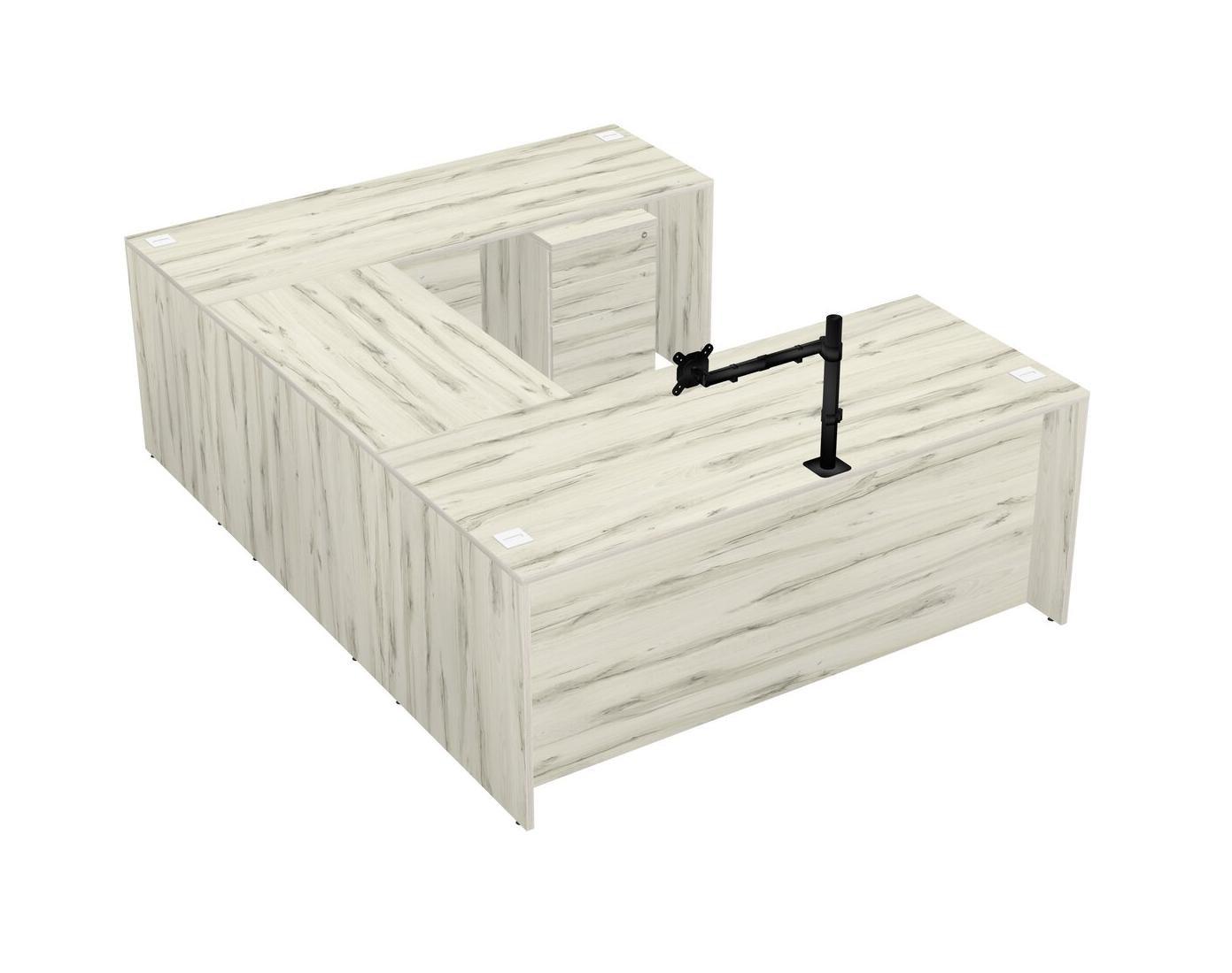 Office U-shaped Desk Credenza Desk + Wooden Mobile Drawers + Monitor Arm (single Arm)