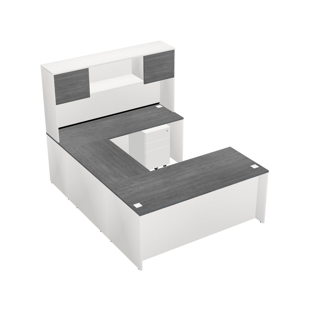 Office U-shaped Desk Credenza Desk + Wooden Mobile Drawers + Hutch