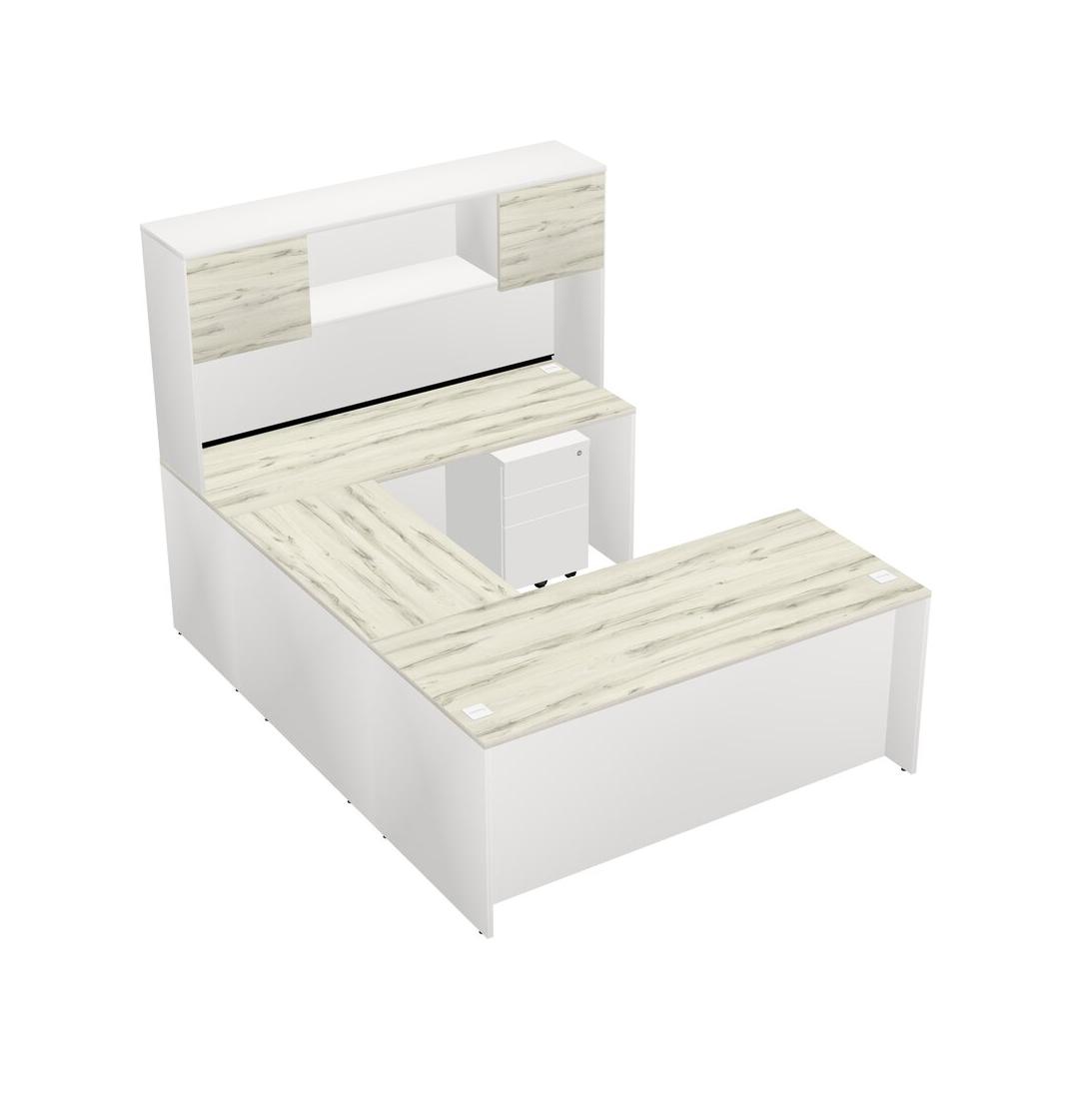 Office U-shaped Desk Credenza Desk + Wooden Mobile Drawers + Hutch