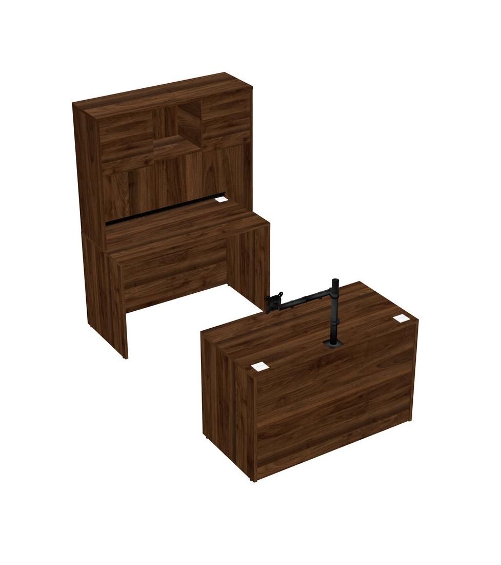 Office Parallel Desk Credenza Desk + Hutch + Monitor Arm (single Arm)